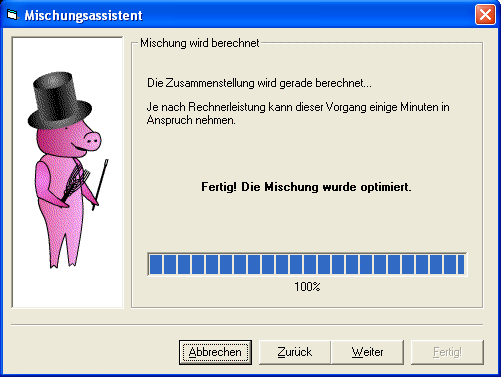 Mit einem bequemen Assistenten werden Sie Schritt für Schritt durch den Optimierungsvorgang geführt. Einfach und schnell erstellen Sie so optimierte Mischungen.